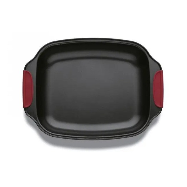 Червоні насадки силіконові на ручках витримують температуру до 230°C. Якщо використовується температура вище, силіконові ручки легко знімаються. Вони виглядають дуже стильно у поєднанні із чорною формою.