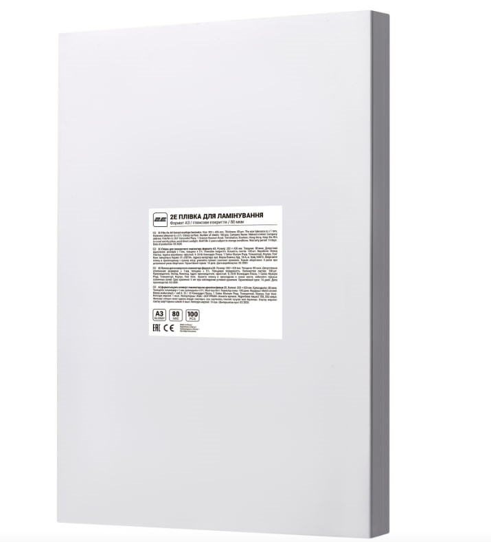 Плівка для ламінатора A3 2E 2E-FILM-A3-080G, глянсове покриття, 80 мкм, 100 шт (SHiz16770)